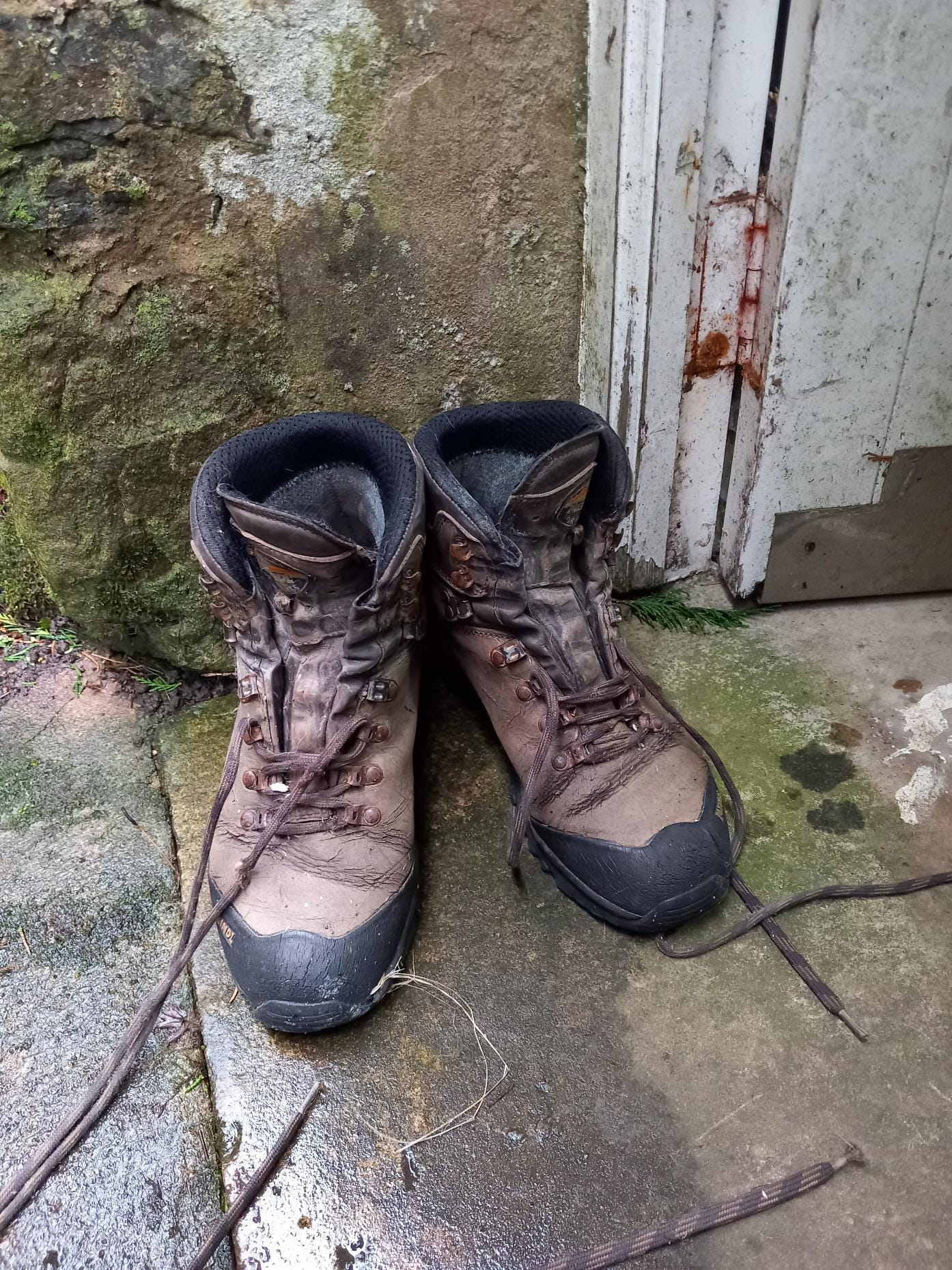 For boots, if not for dogs, this creates a dilemma. Boots these days cannot be buried, with or without the honours due to them. Too many artificial materials. But it is simply unthinkable to take them off my feet and put them straight into the bin. What kind of cold-hearted monster could do that? And I fear that I know a thing or two about cold-hearted monsterdom. So I have a special shelf in a dark corner of the shed where my boots go when they retire. We tell each other that there will maybe come a morning and some particularly mucky job that does not warrant the ruination of new boots. The old boots will come out of the reserves and we’ll stride out together again, just like in the old days. Maybe we will. In the meantime, the old boots close their eyes for a bit of a well-earned nap. They gather dust on the bottom shelf until the life finally leaves them. It may be a month or two. Rarely more than a year. Then, and only then, can I bring myself to dispose of the husk of the old boots whose stories have all evaporated into the evening breeze.